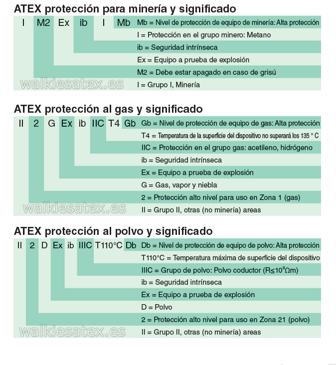 Ejemplos de significado de la certificación ATEX: